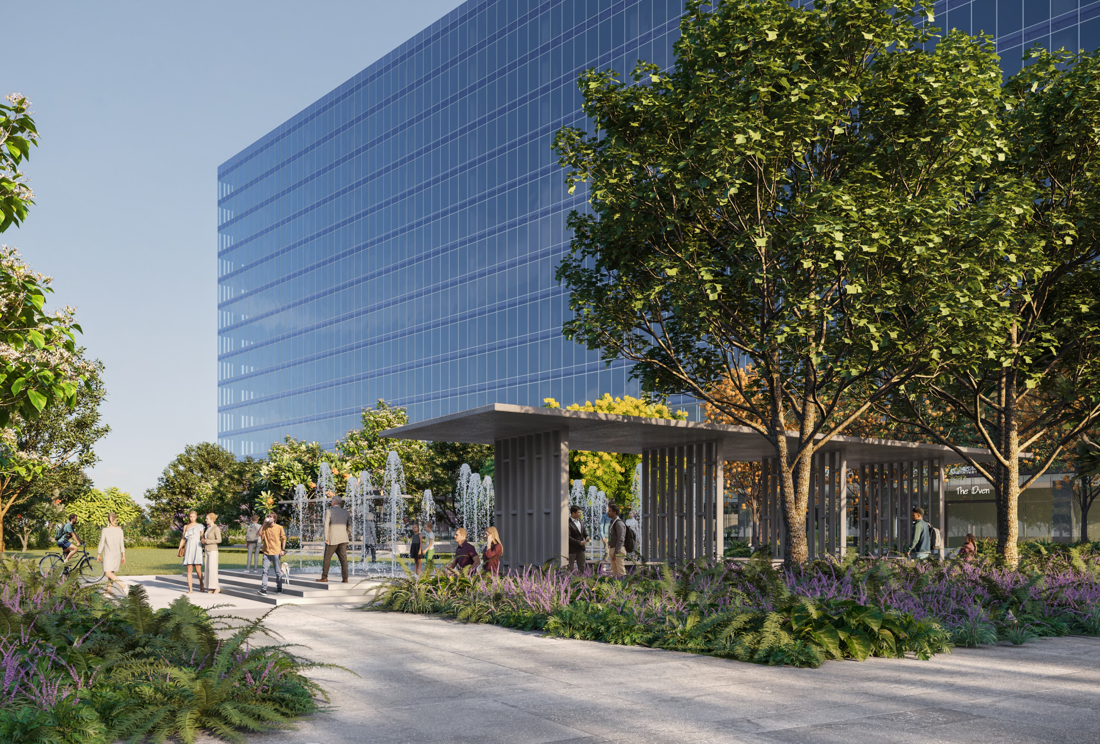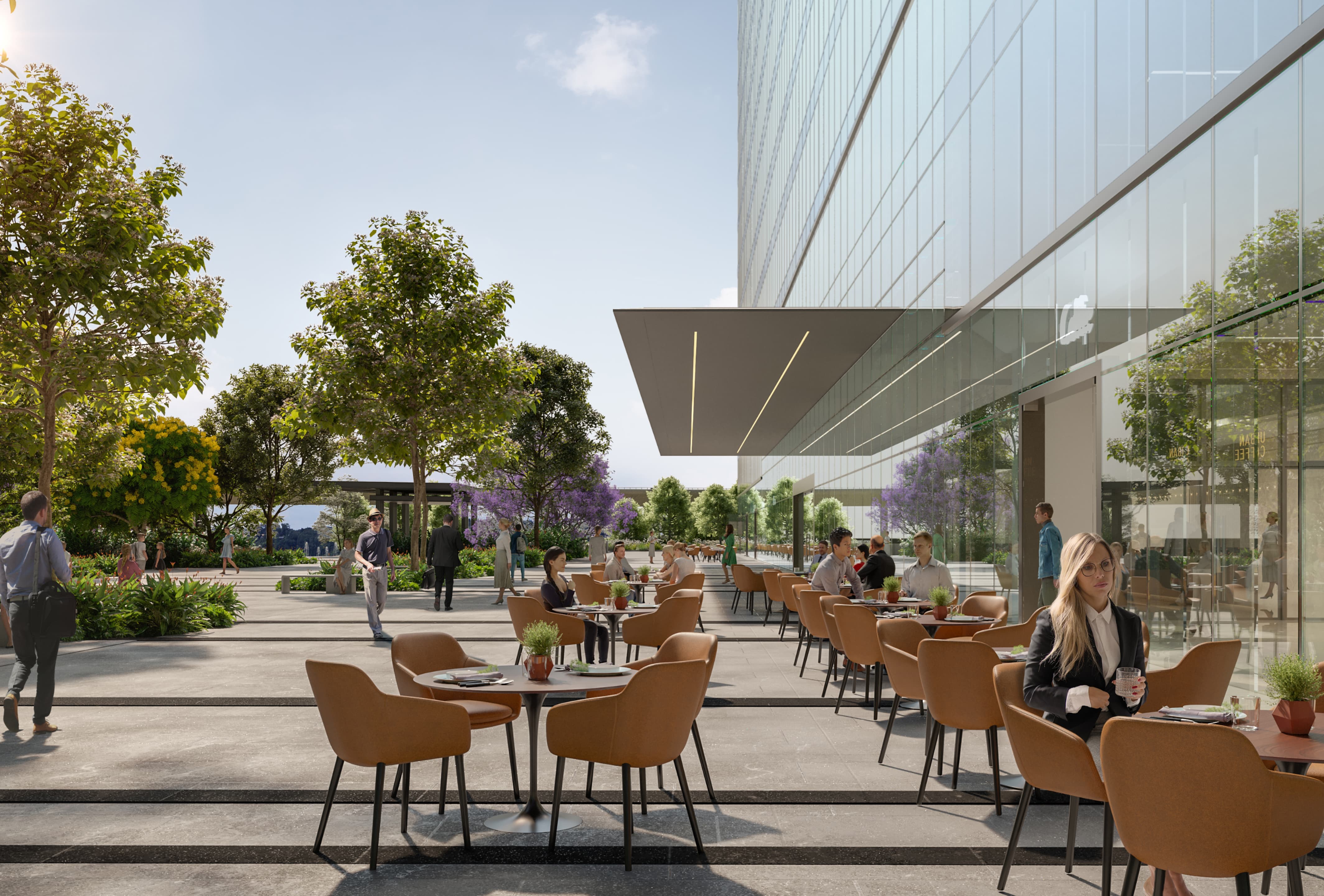 A cantilevered canopy leads to landscaped zones and calming waterbodies—spaces to gather, unwind or pause between moments. Open-air cafés and fine dining spots add comfort and convenience, letting work and life flow effortlessly together.