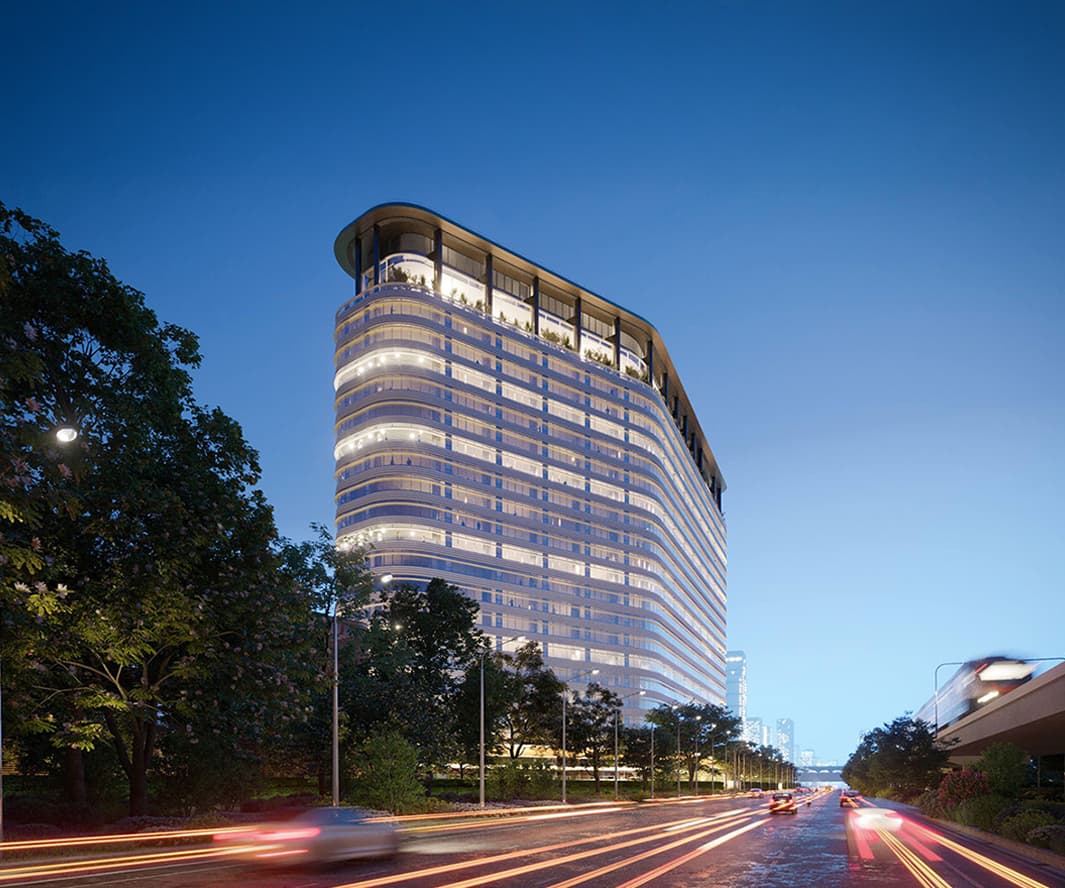 With its striking curved glass façade and soaring verticality, Godrej GCR blends nature and innovation to meet the city’s evolving needs. Thoughtful landscaping, water bodies and an aerodynamic design help cool the space and improve air quality, while a generous canopy offers year-round comfort.
