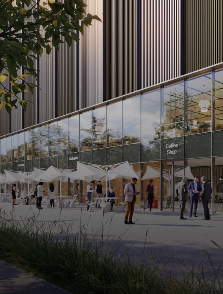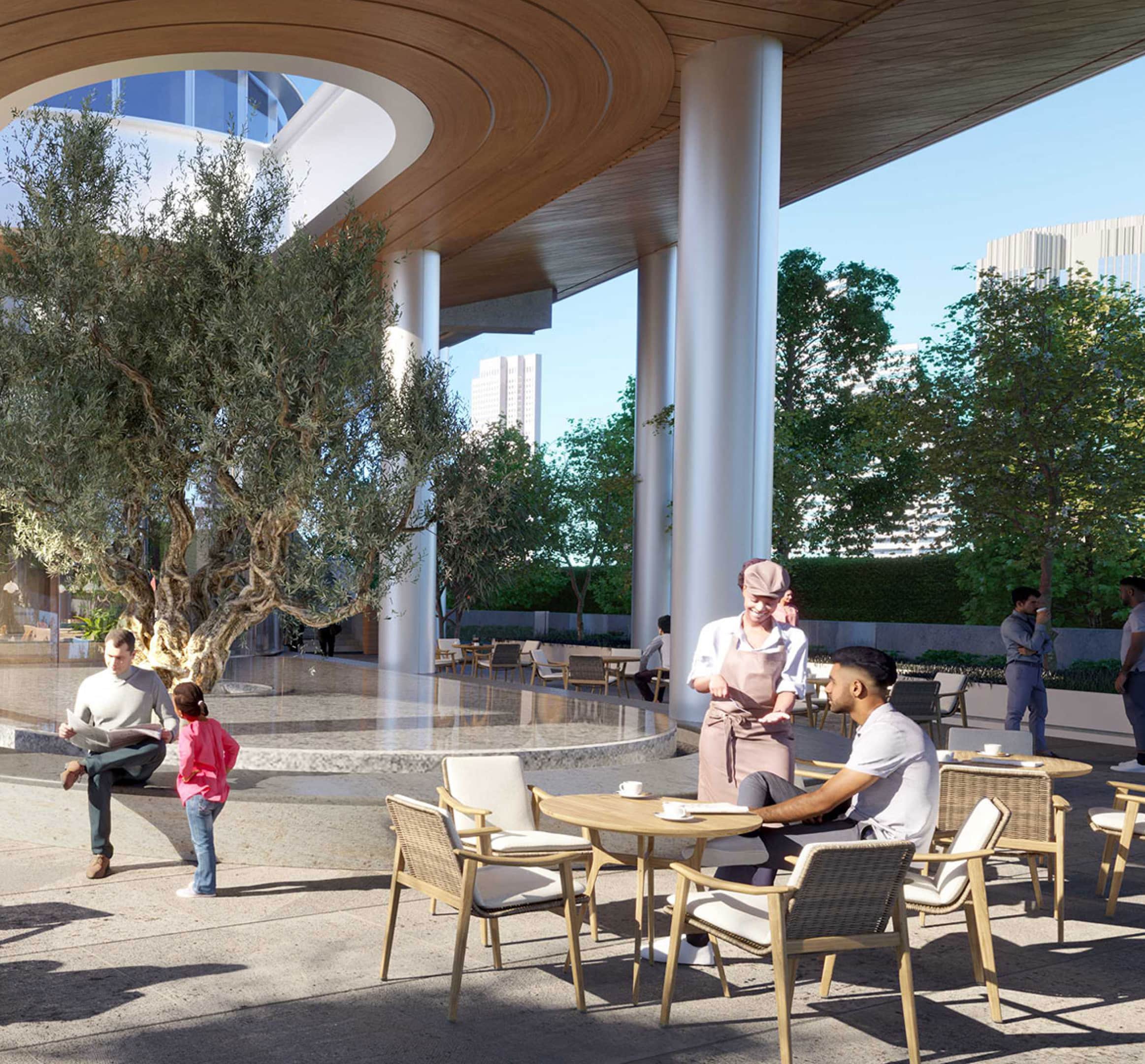 Our expansive lobbies set the stage for art, interaction and community. Open-air work pods redefine traditional offices, fostering dialogue and collaboration. By day, the amphitheatre buzzes with business; by night, it transforms into a stage for live music and cultural events. Alfresco spaces offer a place to unwind, connect and recharge.